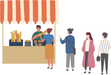 障がい者施設に通う方々の自立を支援するために、毎月9事業所の食堂において各地域の障がい者施設に販売する場を提供しています。売上金は施設の運用資金として活用されています。