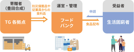 消費期限を間近に控えた社内の防災備蓄食料品や従業員が持ち寄った食料品を、「もったいないをありがとうに」を掲げるセカンドハーベスト名古屋(フードバンクNPO団体)などに寄贈し、生活困窮者に提供活用いただくことで地域社会に貢献しています。