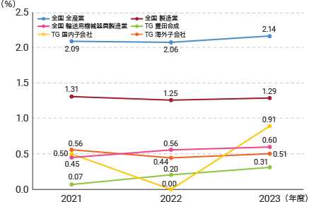 アブセンティーズム (疾病による14日以上の休業者率) |