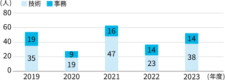 事業成長・事業基盤強化を支える取り組みとして、これまでも中期での要員計画を立案する中で、各部のニーズに基づき強化分野の必要人員数を整理し、既存業務の効率化を進めることにより、要員構造の転換(強化分野へのリソーセスシフト)にチャレンジしてきました。