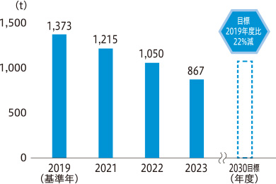 排出抑制・発生源対策、ゴム・樹脂屑のリサイクル、分別徹底による資源の有効利用などにより産業廃棄物の低減に取り組んでいます。