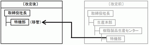 意思決定の迅速化をねらいに、特機部を生産本部から社長直轄組織へ移管
