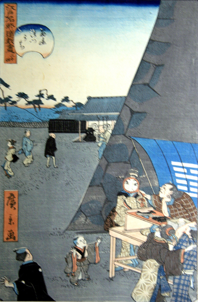 宗像さんは、元々わが国の伝統美術や工芸などに興味を抱かれていましたが、とりわけ「浮世絵」に惹かれるようになられたのは30数年ほど以前とのこと。 浮世絵は、広重など〝元絵〟の作者の人並み外れた画才に加えて、彫り師や 刷り師の高度な技量、そのうえ世界的にも比類のみられぬ和紙の利点が理想的にあい重なった至高の芸術品・・との実感を持たれて以来、ごく稀にしか接触できない情報や手づるを求めて東へ西へと足を運ばれ、数十点にものぼる品々を集めてこられたものです。 「浮世絵は、当時の庶民を旅へといざない、現実的な夢を与えて、見知らぬ土地への憧れを誘う役目を果たしたのではあるまいか」とも語られています。