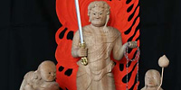 作品ギャラリー 西山芳衛さんの木彫りコーナー 定年後の趣味で長く続いているのが、仏像彫刻です。時間の空いた時に、いつでも一人で出来ることを探して木彫りに行き着きました。木彫りは削り過ぎなどの失敗が出来ない。一発勝負の緊張感が過程で体験できて、完成した作品への愛着は格別です。彫り貯めました作品の一部です。ご笑覧下さい。 下記に表示してある縮小画像をクリックしてください。作品全てをご覧いただけます。 阿弥陀如来仏頭 新作 帝釈天 新作 武田不動仏頭 新作 飛天 童地蔵 十一面観音 月輪観音 不動明王と童子 千手観音 聖観音 恵光童子 毘沙門天 コンガラ童子 制 迦童子 弘法大師 童不動 阿修羅像 地蔵菩薩 大日如来 宝生大黒天 達磨大師 如意輪観音菩薩 持国天 目次に戻る>>