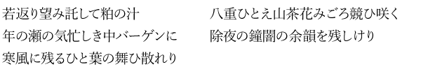 次・1月号の課題は、新年一切(歳時記参照)です。締め切りは、1月20日です。