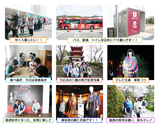 今回のバス旅行は少し心配がありました。それは大河ドラマ館の見学者が多く、入場するのに3時間もかかり帰る人もいるほどの人気ぶり。しかし、私たちは、開館時間9時00分より30分も早く8時30分に到着したため少しの待ち時間で入場でき、皆さん早く来て良かったと言っていました。