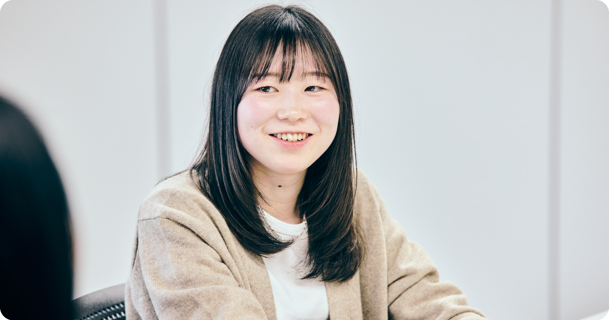 - そうですね。R. Yさんの言うとおり、制度と人柄がかけ合わさることで、当社の働きやすさが実現されているように思います。私が特にありがたいと感じているのが、年に3回行われる面談です。自分がやりたいことを、現在の仕事だけでなく、将来的なキャリアアップも踏まえて上司の方に相談できますし、そこでお互いを尊重する雰囲気があるからこそ、信頼して自分の想いを伝えることができています。