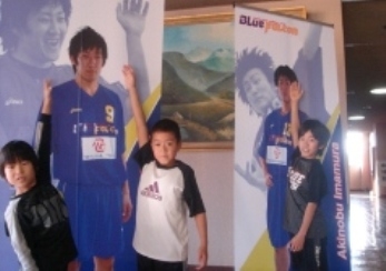 日本ハンドボールリーグ稲沢大会(稲沢市総合体育館)では、入り口から2Fに上がると現役選手の等身大パネルがお出迎え。大きなパネルは、来場されたファンの皆様や子ども達に「こんにちは!今日は来てくれてありがとう!」「大声で僕達を応援してください」と、今にも飛び出して声を掛けてきそうなくらいの迫力があります。子ども達は「あともう少しで追いつくぞー」とばかりに背比べをしたり、「すごい大きいなぁー、僕も大きくなりたいなぁ」と実際の選手の大きさに驚きを隠せません。でも、ブルーファルコンの選手は日本リーグではまだまだ小柄なチーム。日々のトレーニングを積み重ねてもっともっと大きくなる努力をしています。数年後にはさらに迫力のあるパネルになっているかもしれませんね。是非会場に足を運んで、実際の選手の大きさを感じて下さい。会場で待っています!
