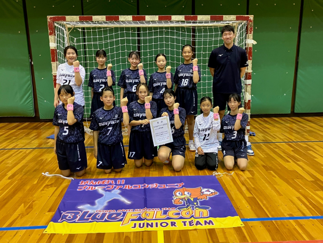 令和7年2月22日(土)、大治町スポーツセンターにおいて、令和6年度西尾張地区中学1年生ハンドボール交流会が行われ、ブルーファルコンジュニアユースが見事優勝しました。