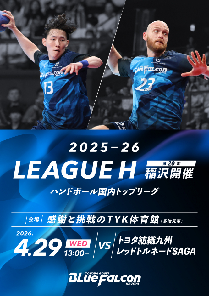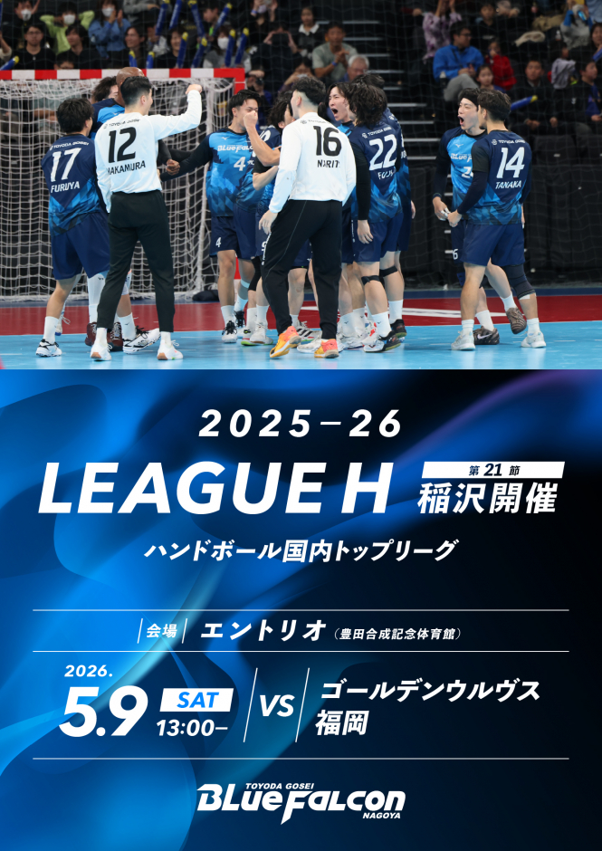 引き続き、豊田合成ブルーファルコン名古屋へのご支援、ご声援をよろしくお願いいたします。