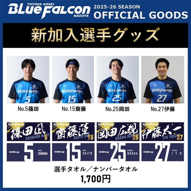 ・新加入選手グッズ(選手タオル、ナンバータオル) ¥1,700